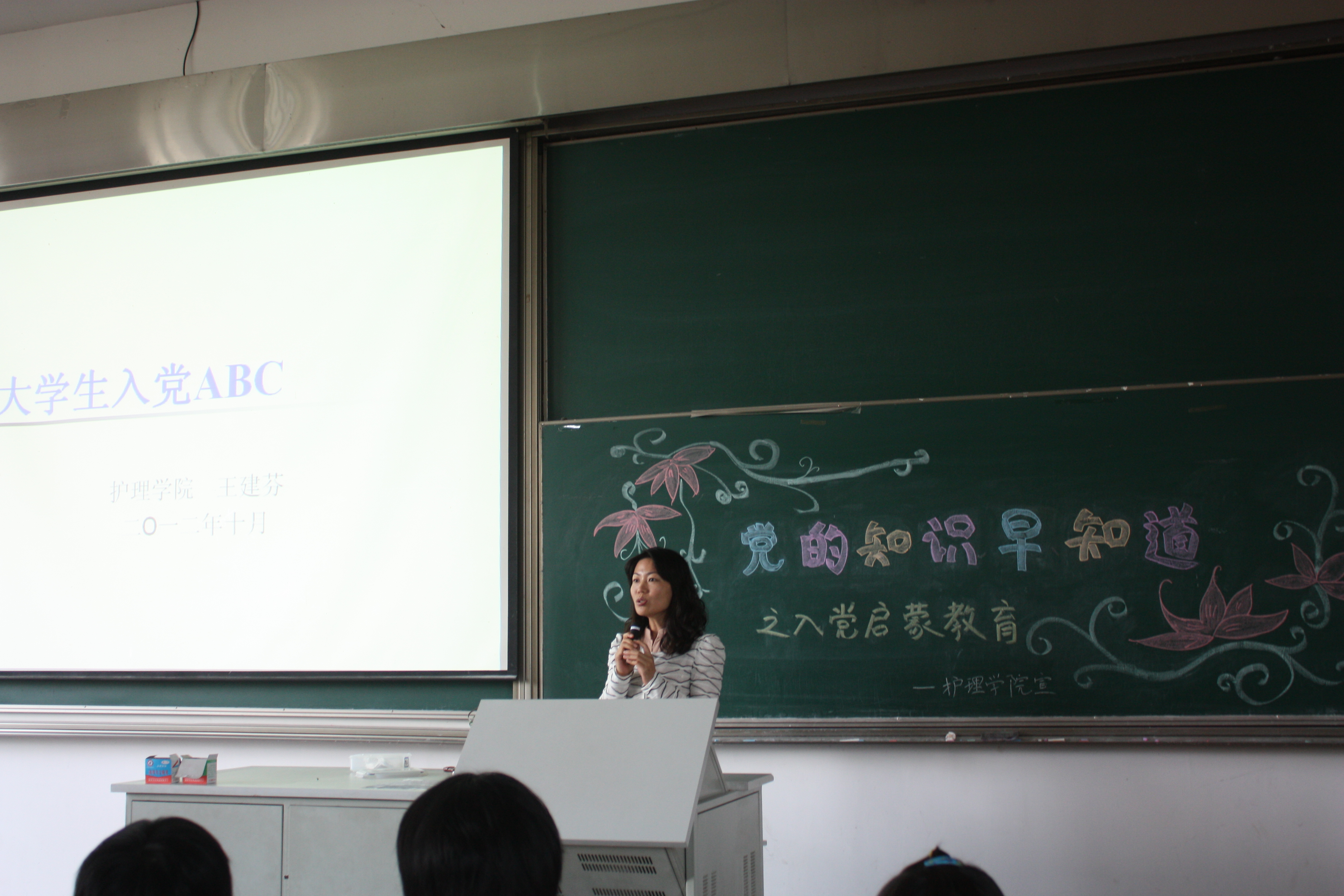 10月12日上午9点15分,护理学院在第三阶梯教室为2012级新生进行了入党启蒙教育。本次讲座主讲人是我院党总支副书记王建芬老师。