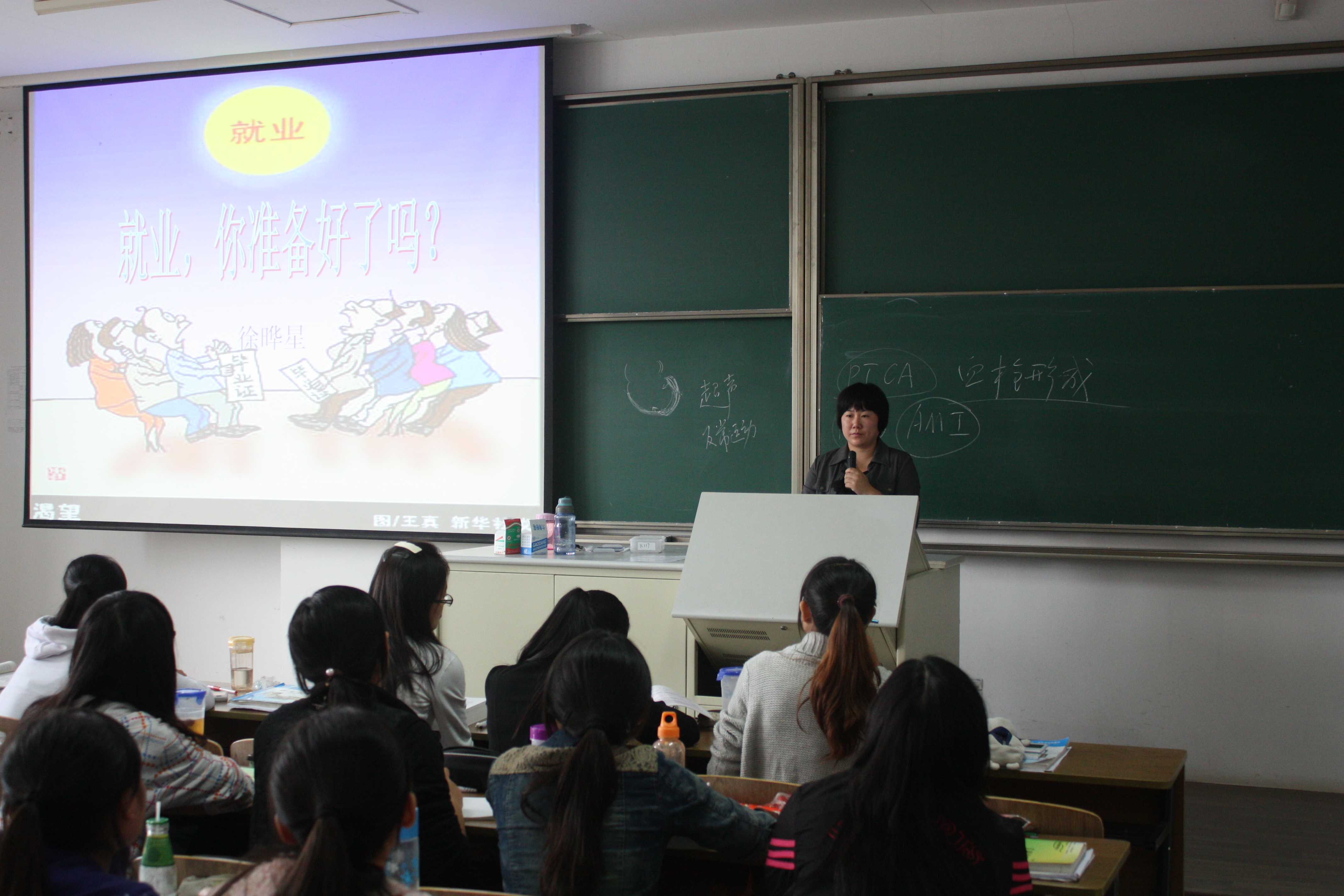2012年10月16日上午10点30分,护理学院在康达楼K117对2010级同学开展了就业知识讲座。本次讲座由学工办副主任徐晔星老师主讲,她用了将近九十分钟的时间从自身努力方向,就业形势,以及如何制作简历等方面为大三的同学们详尽分析,让大家受益颇多。同学们聚精会神地听着徐老师的话,力求掌握其中精髓,为将来的就业铺路。