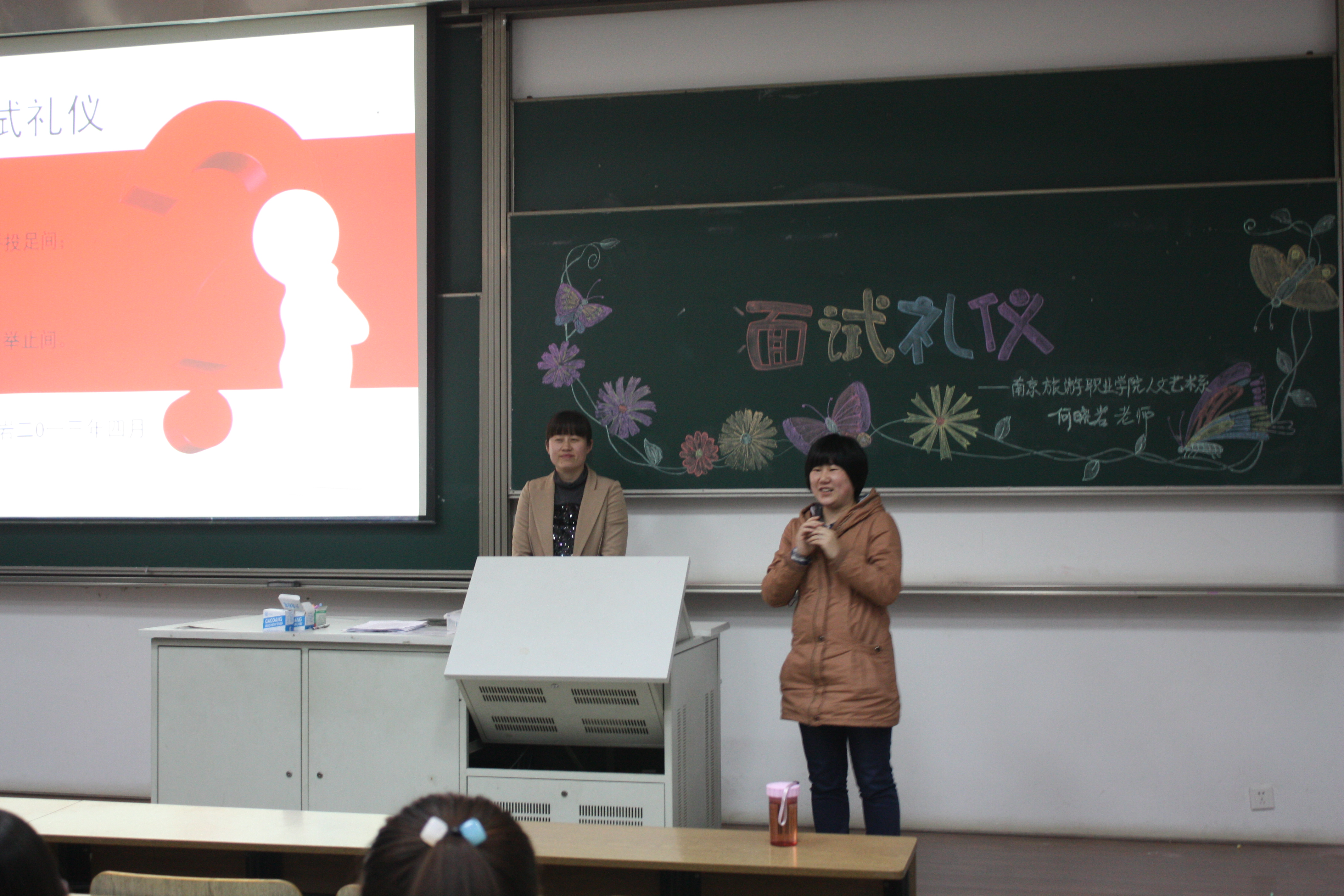 2013年4月11日,护理学院特地邀请南京旅游职业学院人文艺术系的何晓岩老师进行面试礼仪的讲座,参与本次讲座的有徐晔星老师以及即将步入实习的2010级同学。