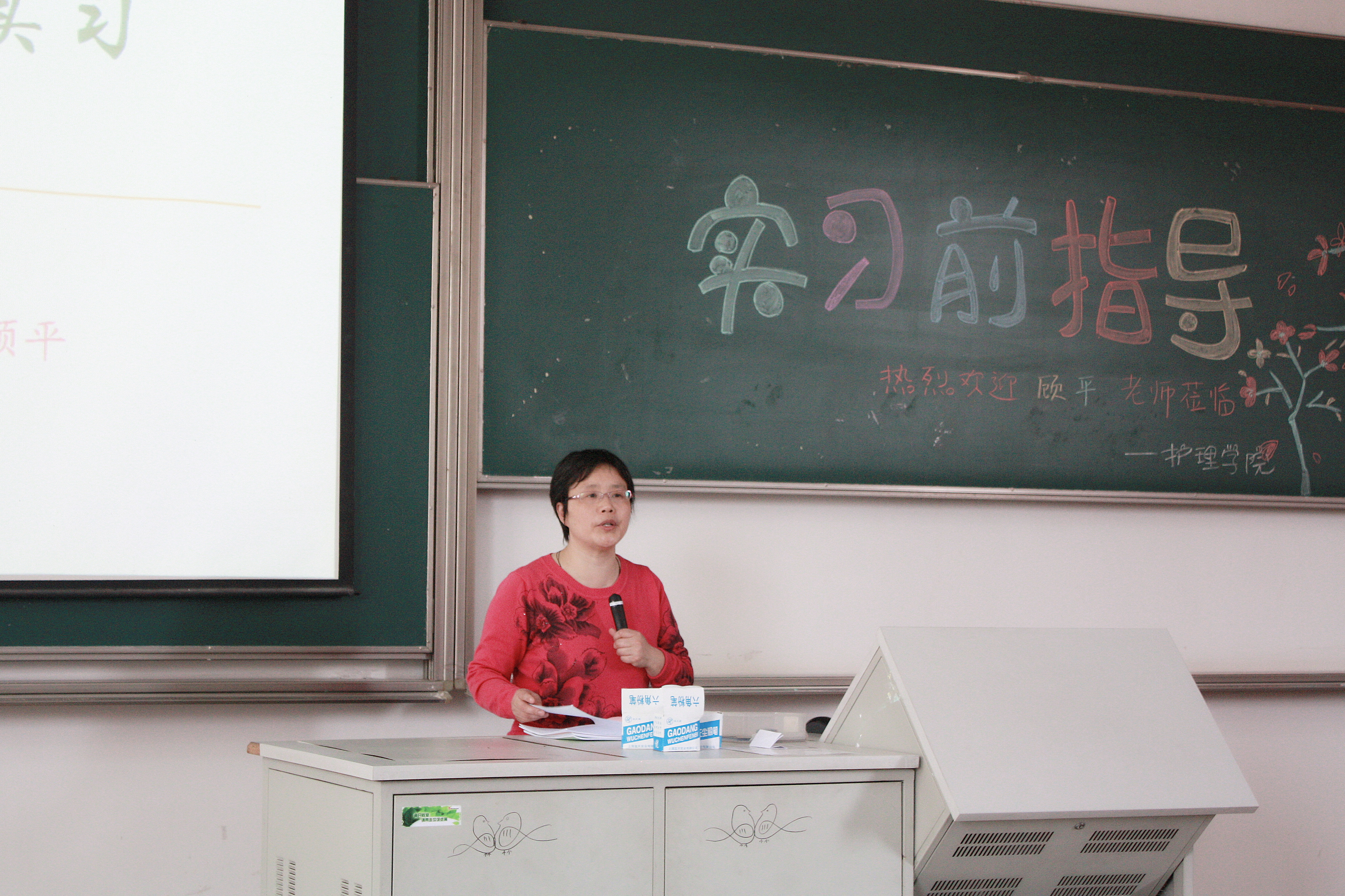 2013年4月26日下午两点,护理学院顾平副院长、江苏省人民医院泌尿内科护士长王雪梅老师,以及学工办徐晔星老师在阶六为护理学院10级全体学生进行了下实习点前的指导。诸位老师声情并茂、激情澎湃地为同学们讲解着,指导着,希望为大三的全体学生上好下点前最后一课,使大家在进入实习点后能尽快地适应为期一年的医院生活。