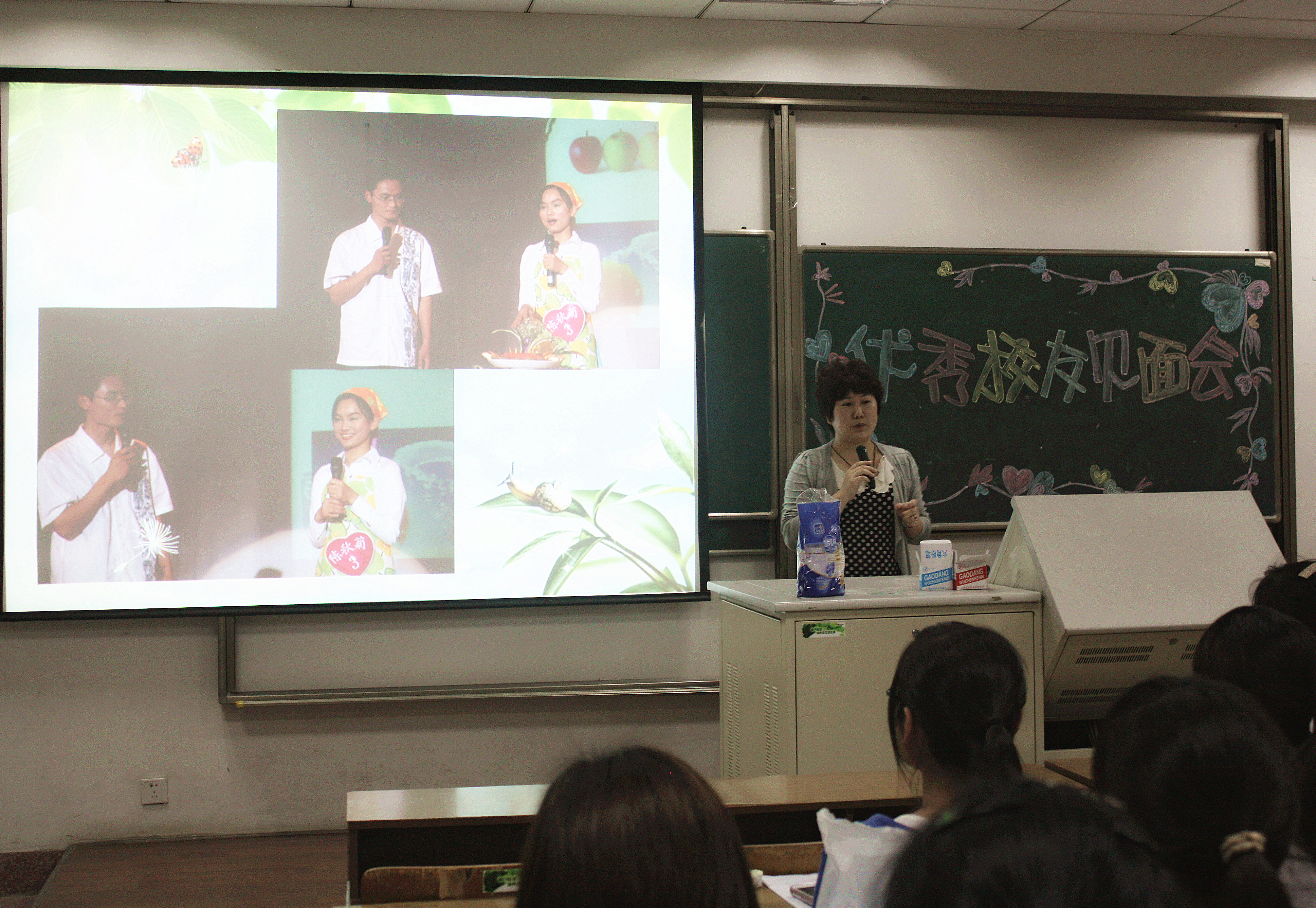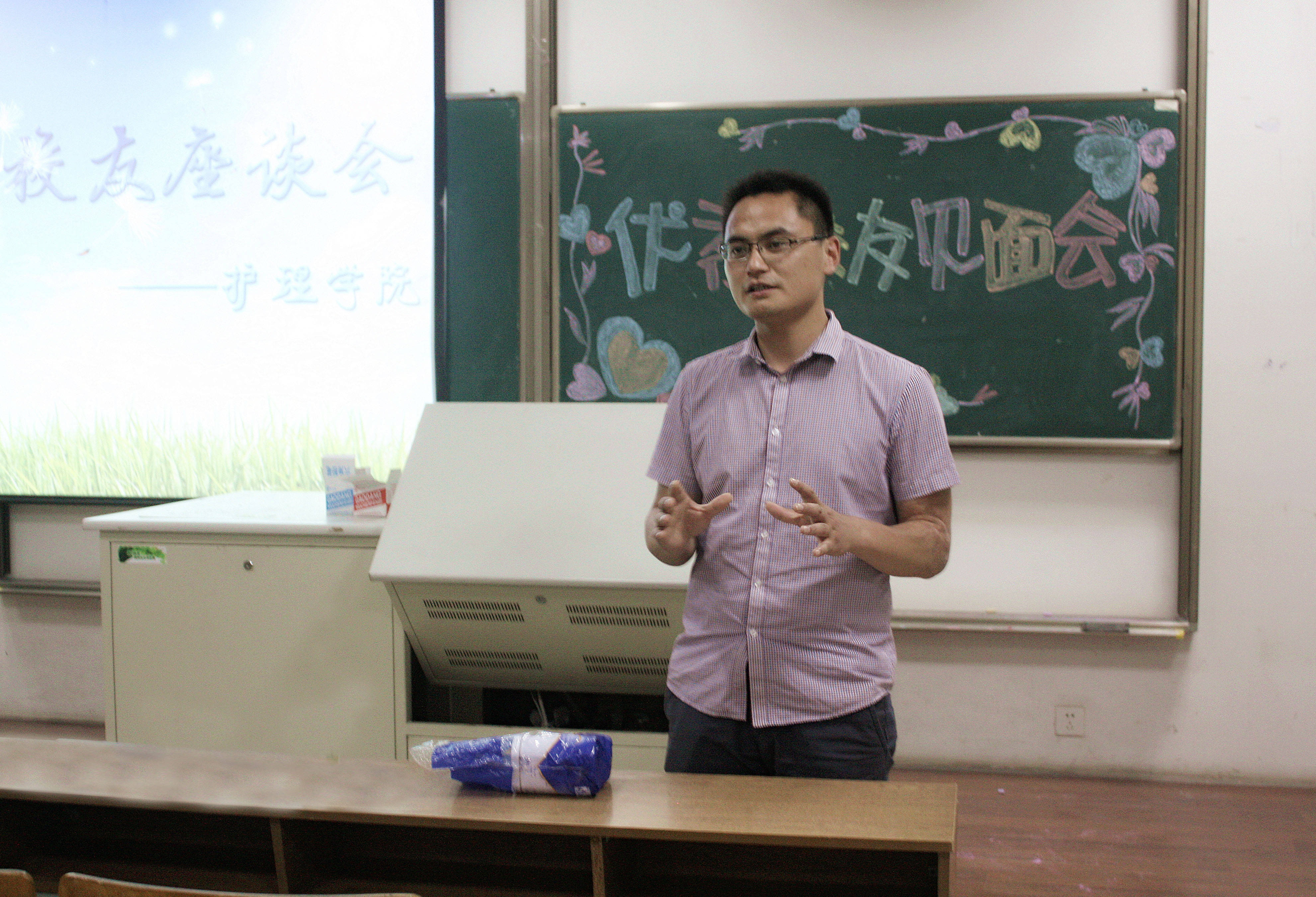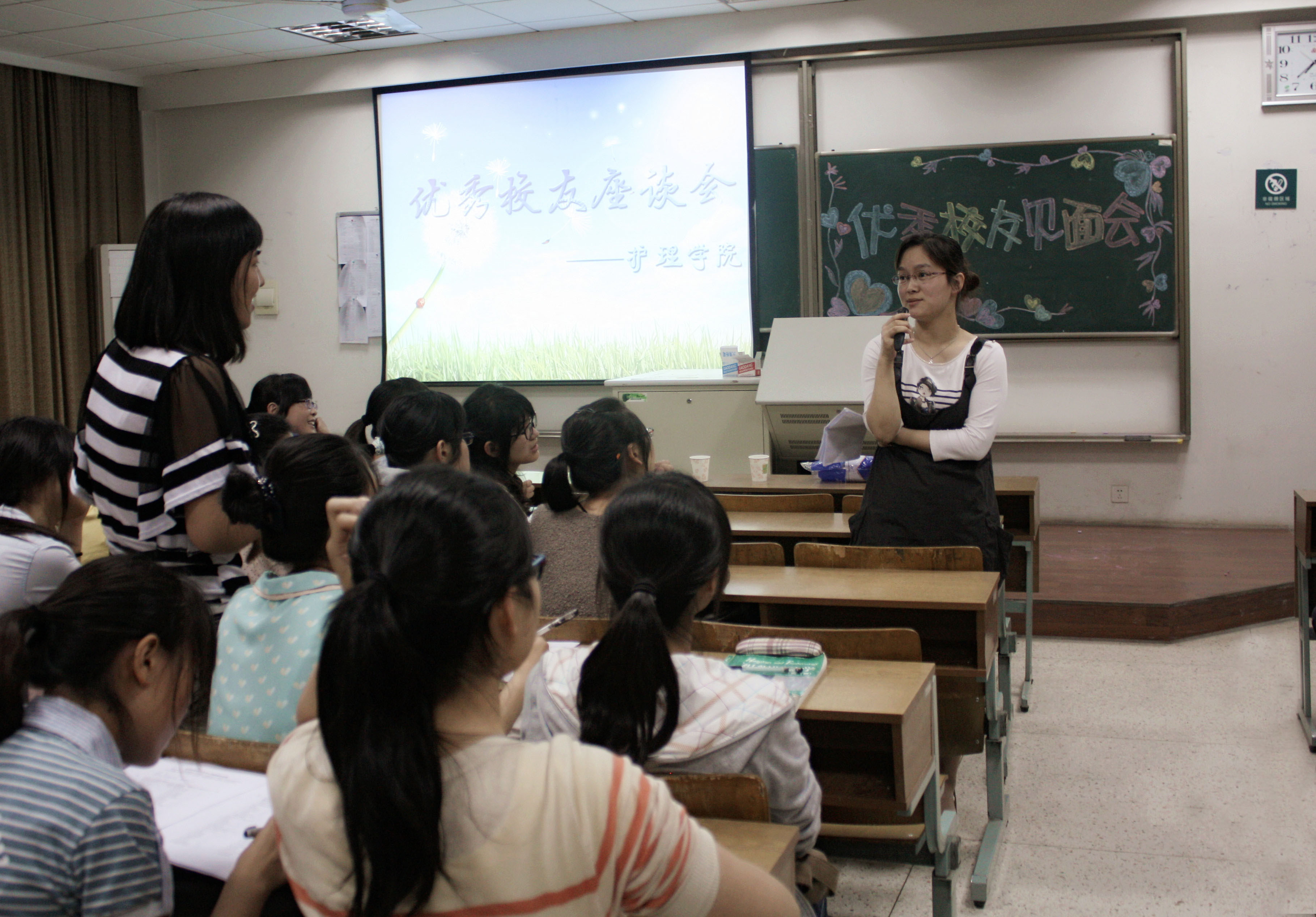 2013年5月15日晚,护理学院在B106教室举办了一场优秀校友见面会。参加此次见面会的有校友王家麟和陈秋菊,徐晔星老师和吴菲老师以及各班同学。