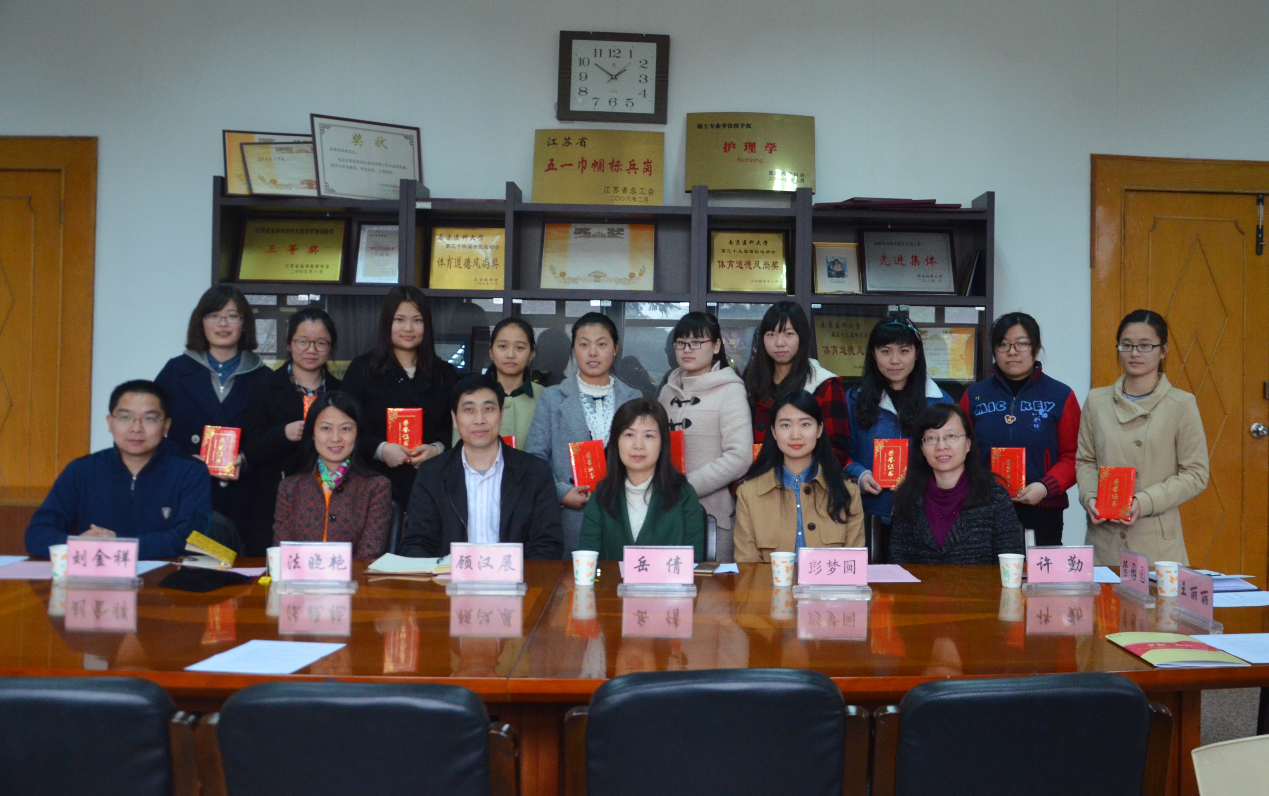 2015年3月18日下午,2013-2014学年“亚东奖学金”颁发仪式在护理学院会议室举行,江苏亚东建设发展集团、学校发展办、学工处、护理学院相关领导以及获奖学生出席了仪式。仪式由护理学院党总支顾汉展书记主持。