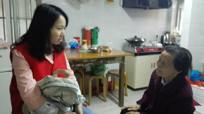 聊着聊着,两个小时很快就过去了,志愿者跟戴奶奶告别。她一直把大家送到门口,嘴中还担心着大家怎么回校、怎么吃饭?志愿者们真的是挺感动的。这个母亲节,大家都希望她过得快乐!