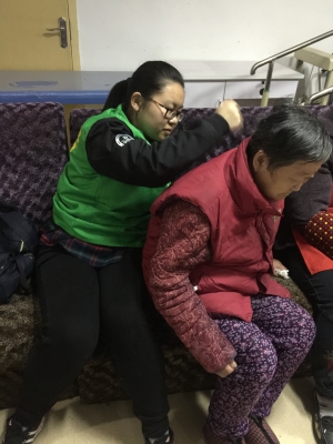 志愿者们首先询问老人的需求,虽然老人们讲话半方言半普通话,但志愿者们仍耐心地倾听回答老人。剪指甲这件看似很简单的事情在活动中也需要小心,剪的时候不能剪到底,要适度留一段。有的志愿者是第一次进行志愿活动,没有剃胡须的经验,生怕弄疼了老人。但在负责人的指导下,成功地帮老人剃了胡须。在结束身体护理之后,志愿者们有的拉着老人的手,有的挽着老人的胳膊,还有的揉着他们的肩膀,陪老人们拉家常,忆往昔,听爷爷奶奶们念叨他们一辈子的事。