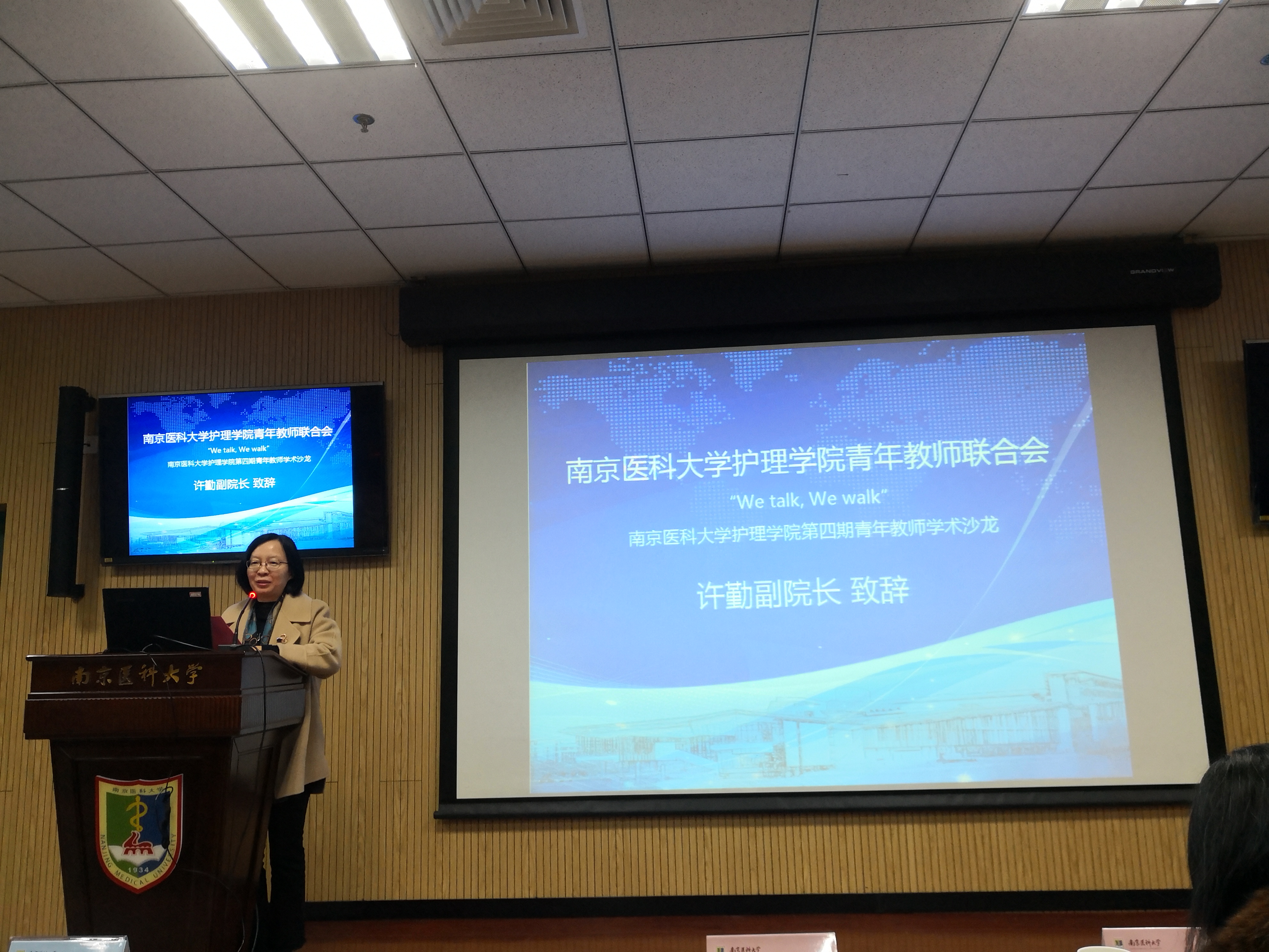 由南京医科大学护理学院青年教师联合会主办的“We talk,We walk”第四期青年教师学术沙龙于128日在江宁校区学海楼D002举行,来自护理学院及在宁附属医院共计百余位的青年教师和研究生们参加了此次活动。
