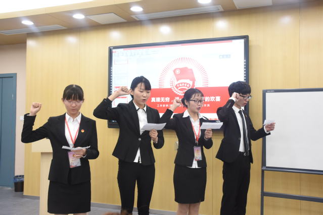 继而,赵老师宣布开班典礼开始,并请李洋老师为学员们进行了第二期宣讲团的培训。在培训中,李老师提出三问:什么是微团课?微团课的表现形式有哪些?微团课的授课内容包括哪些方面?她结合生动的案例和自身经验,为学员们进行了全面的阐述,让学员们更深刻地了解微团课的意义所在。培训结束后,李老师告诉学员们:“讲好演讲,最打动人的不是技巧,而是真诚。”她还送给学员们这样一句话“真理无穷,进一寸是一寸的欢喜”。