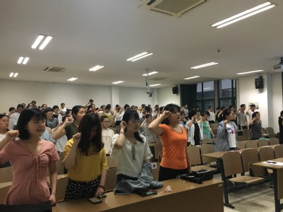政策解读之后就由勤学部副部之一带领大家进行庄严的宣誓,“诚实守信,立身之本;人人诚信,道德日兴;社会诚信,和谐文明。我郑重承诺:我要做诚信公民……”凝练的言语向同学们传达出诚实守信的精神和永恒的誓言。教室里,气氛庄严肃穆,每一位学生都用一颗诚挚无比的心去铭记那句句宣誓,我们的诚信之路也将越走越坚定,越走越远。