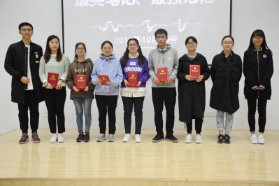 经过笔试分数、必答题分数、抢答题分数和“最美笔记”评分的累加,比赛最终产生了一等奖一名,二等奖两名,三等奖三名,两位辅导员老师和主席团的各位分别为这些参赛选手颁发了荣誉证书,参赛的同学们也都拿到了学习部的活动纪念品。