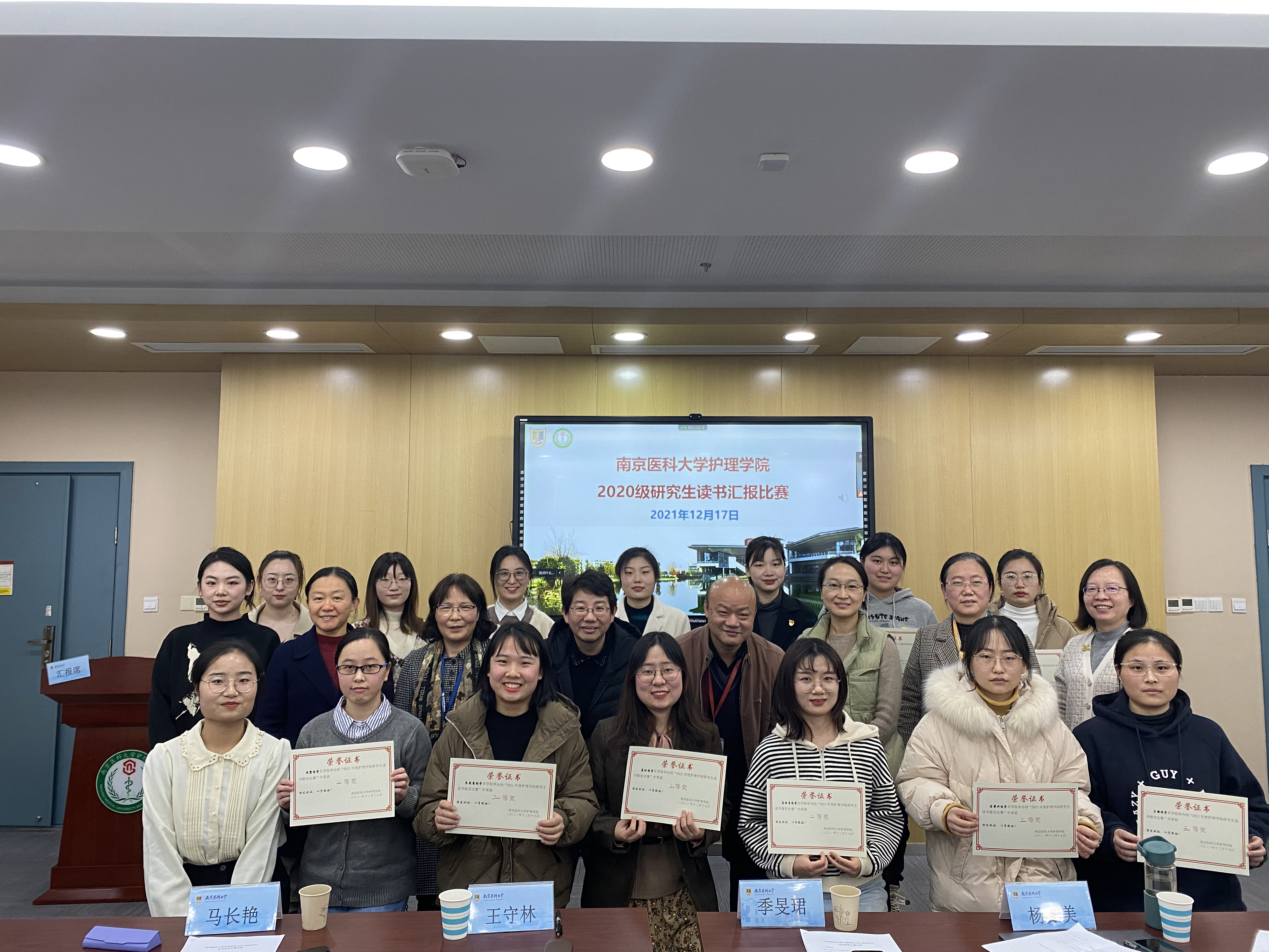 为开拓广大研究生科研思维,营造优良学习氛围,12月17日13:30,南京医科大学护理学院于学海楼C503举行2020级研究生读书报告比赛,并同步进行腾讯会议直播。主持人王清玉、唐李晨同学向大家介绍了此次比赛的评委专家,他们分别是教务处副处长季旻珺教授、基础医学院马长艳教授、公共卫生学院王守林教授、护理学院刘扣英副教授、杨如美副教授,此外,护理学院许勤院长、丁亚萍副院长也作为导师代表莅临本次比赛。此次读书报告比赛共13位研究生选手参加。