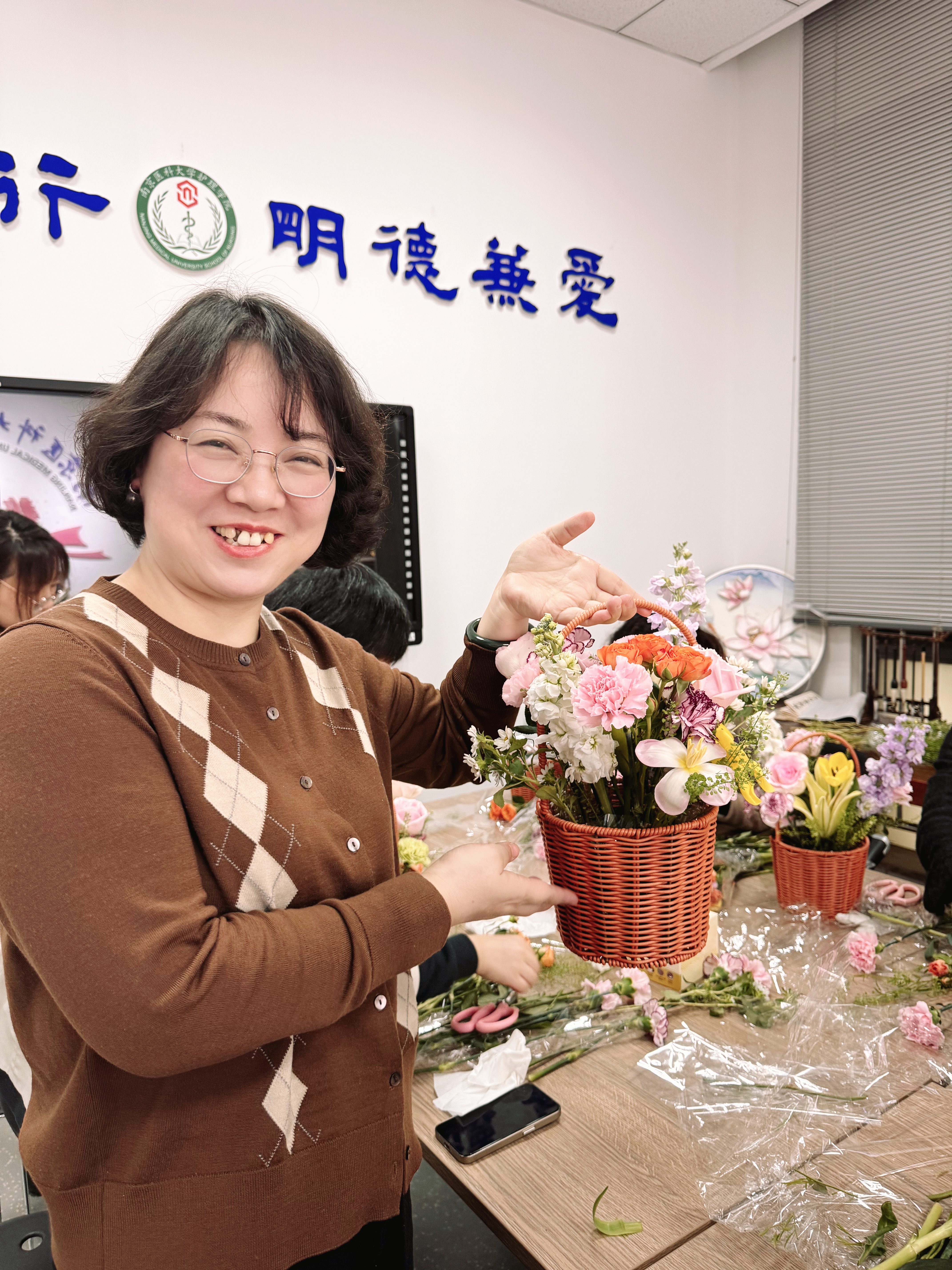 经过一个多小时的精心创作,一篮篮别出心裁、生机盎然的插花作品呈现在眼前。有的作品清雅秀丽,有的作品热烈奔放,每一件都凝聚着创作者对美的理解和对生活的热爱。看着自己亲手完成的艺术品,老师们的脸上洋溢着满满的成就感和幸福的笑容。大家纷纷举起手机,与自己的作品合影留念,记录下这美好的瞬间。